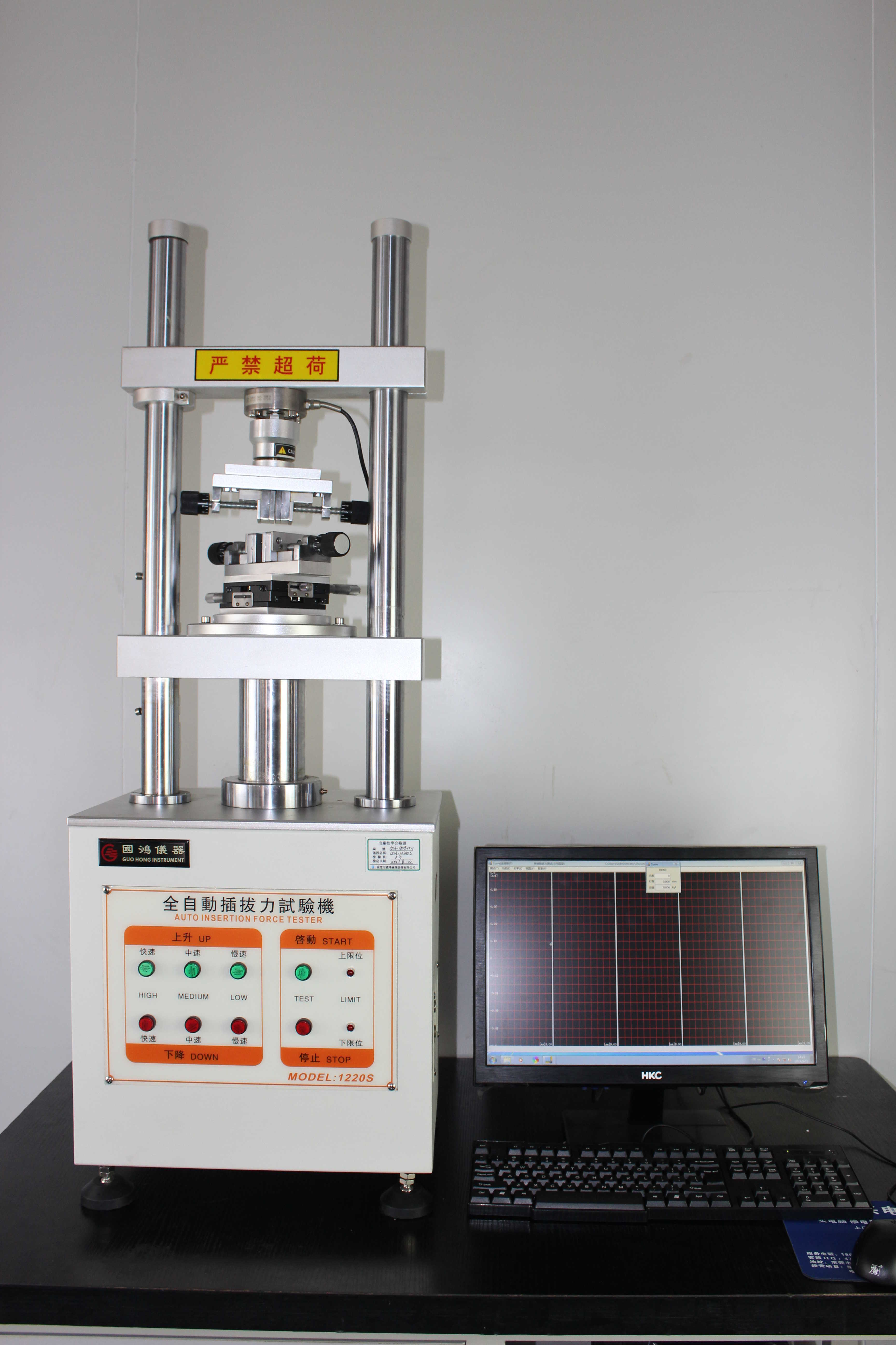 本机适用于各种连接器之插入力及拔出力测试,搭配专利设计之自动求心装置,将可得到完全准确之插拔力试验,利用Windows视窗中文画面设定,操作简单方便,且所有资料皆可储存(试验条件、 位移、曲线图、寿命曲线图、检查报表等)解决各种连接器测试的夹具问题及测试时公母连接器能自动对准,不会有吃单边的问题。搭配动态阻抗测试系统,可在测试插拔力同时测试动态阻抗并绘制 (荷重行程-阻抗曲线图)。